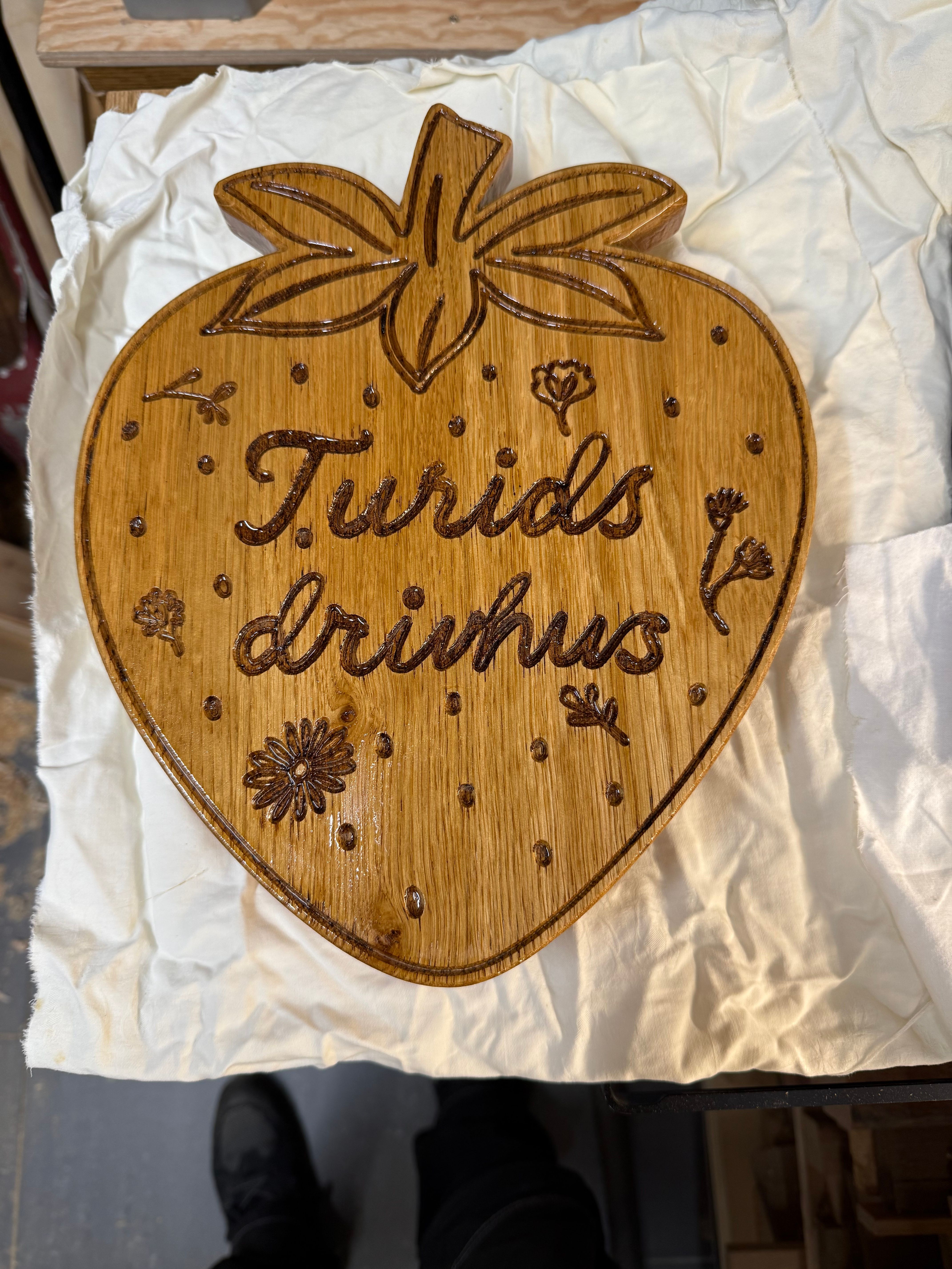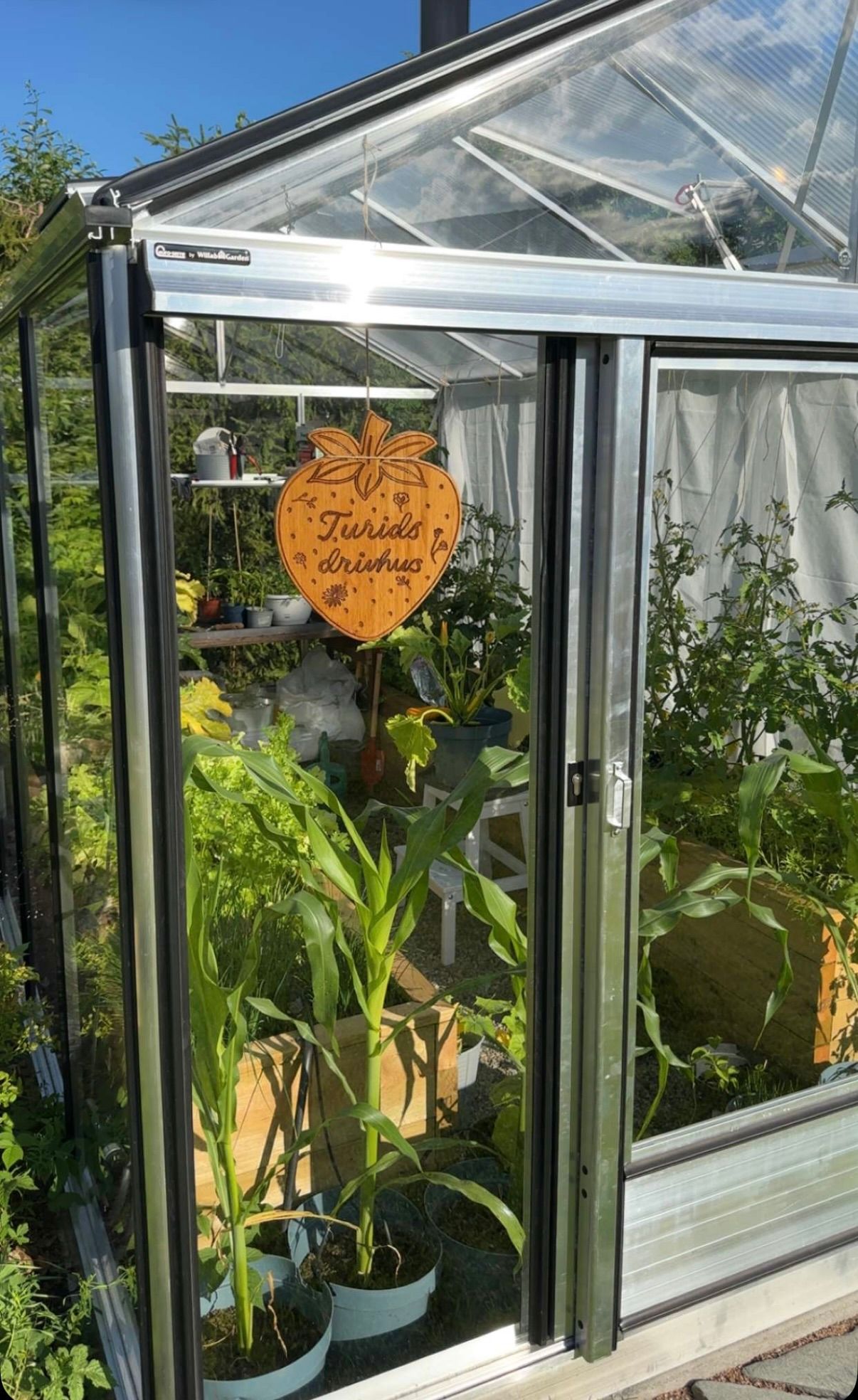 Skilt i heltre eik til drivhus
